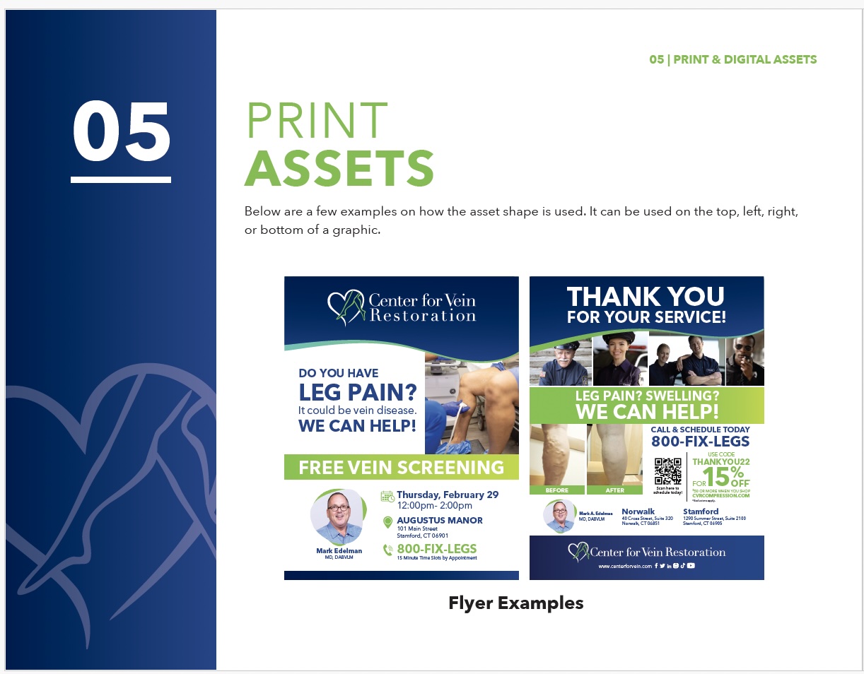 Center for Vein Restoration (CVR) rebrand encompasses a comprehensive, patient-focused identity designed to establish trust, expertise, and accessibility in vein care. Its brand strategy, messaging, and visual identity work together to position CVR as a leader in the industry.