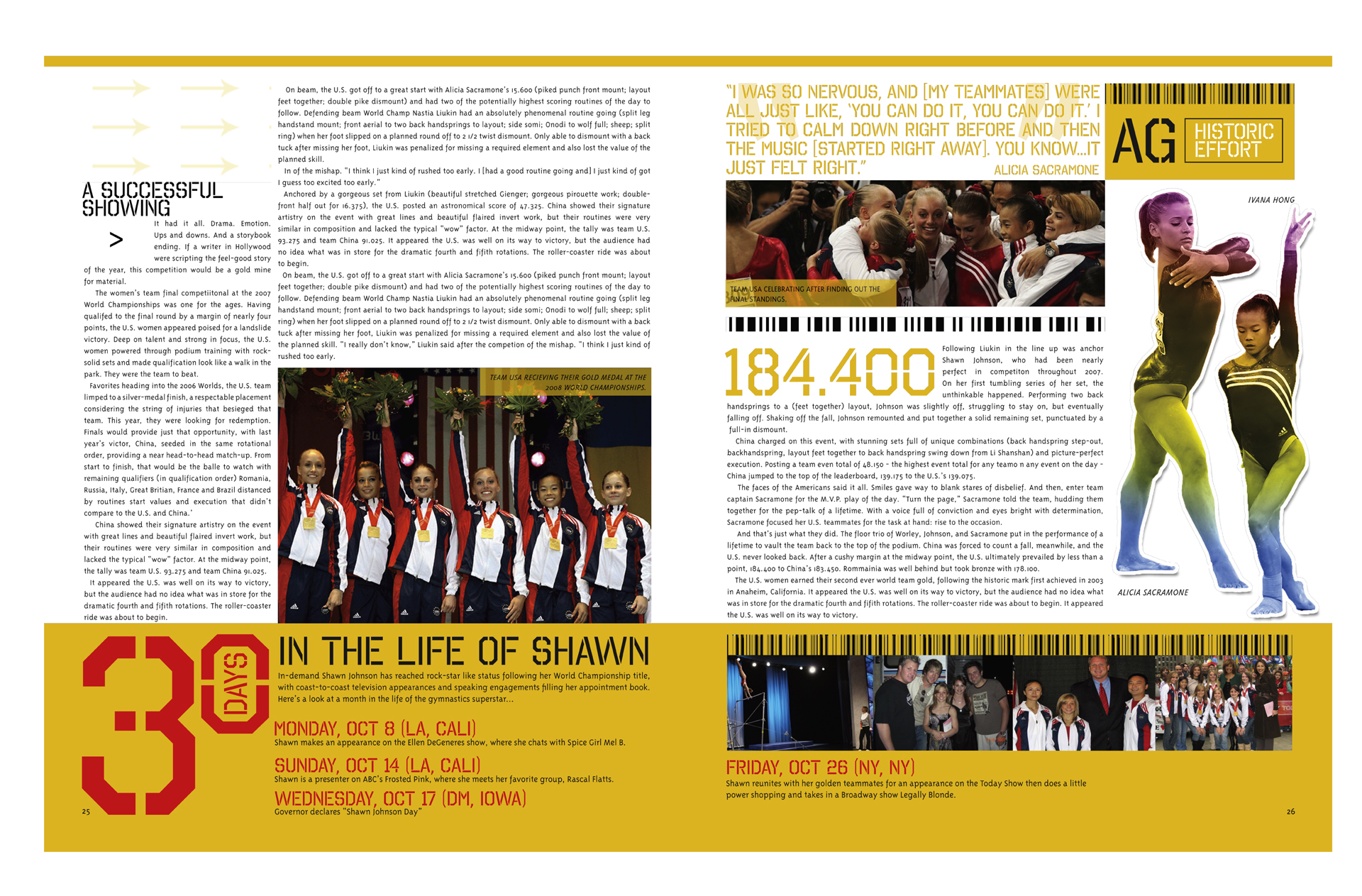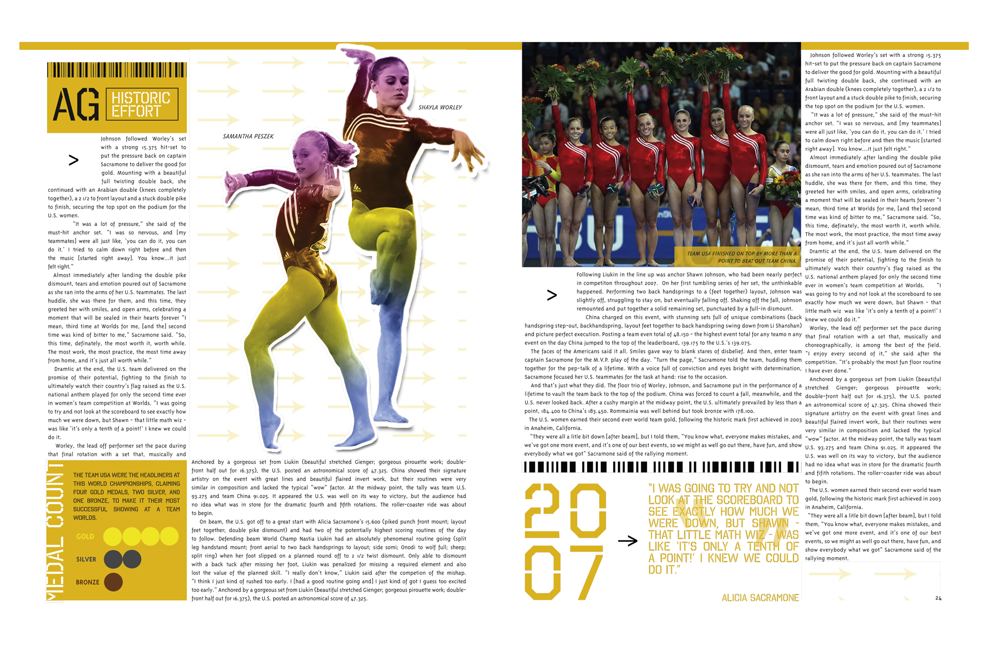 The use of barcodes, arrows, and stencil-like typography represents the technicalityof gymnastics. This is also communicated through the cutout and color of the images.